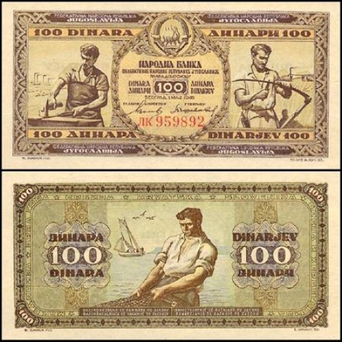Yugoslavia Iugoslávia P-65b Fe 100 Dinara 1946